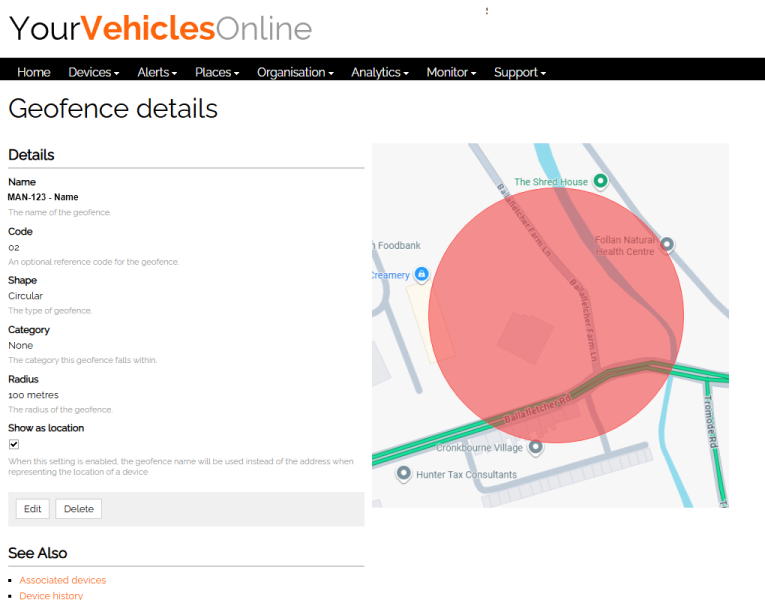 ScreenshotGeofencing helps define important locations, such as offices, depots, or customer sites, allowing users to use meaningful names instead of addresses for easy reference and management.